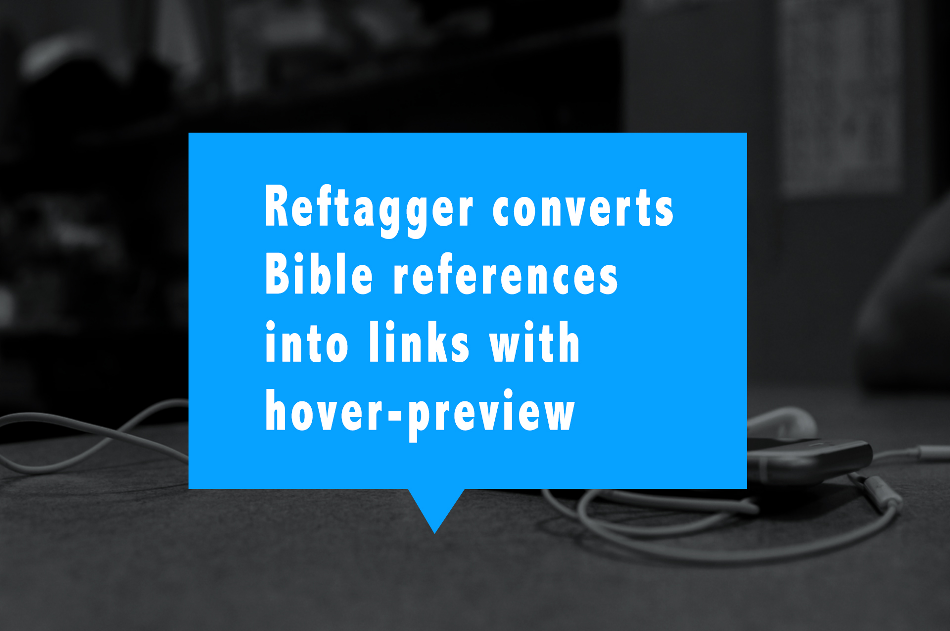 Reftagger is a simple utility that allows webmasters or blog writers easily and automatically to link Bible references to the entire verse or verses. The way the utility works is the site visitor will see any Bible reference appear as a link, and when they hover their mouse over the link a small box will pop up over the link with the Bible verse displayed in the desired translation. The pop up box also allows the user to visit Biblia.com to see the verse or other version, in addition to click on icons that give them a chance to share the verse on social media networks like Twitter, Facebook or Google.
